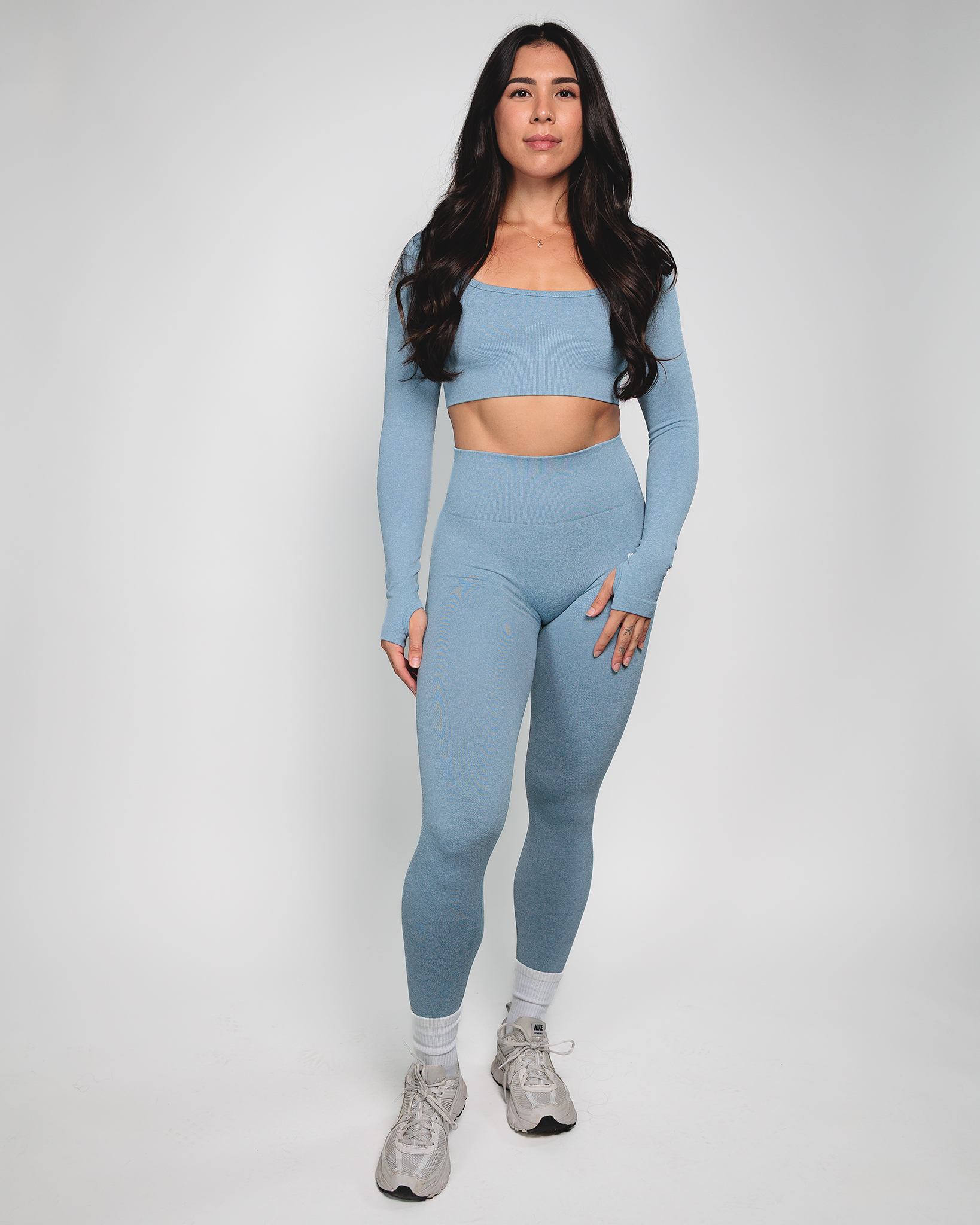 The materials used in this product consist of a cotton and polyester blend. Our very first Yoga sets were made with a thick material that is breathable and extremely stretchy. This set will make you feel supported as you run, dance or walk through your day.